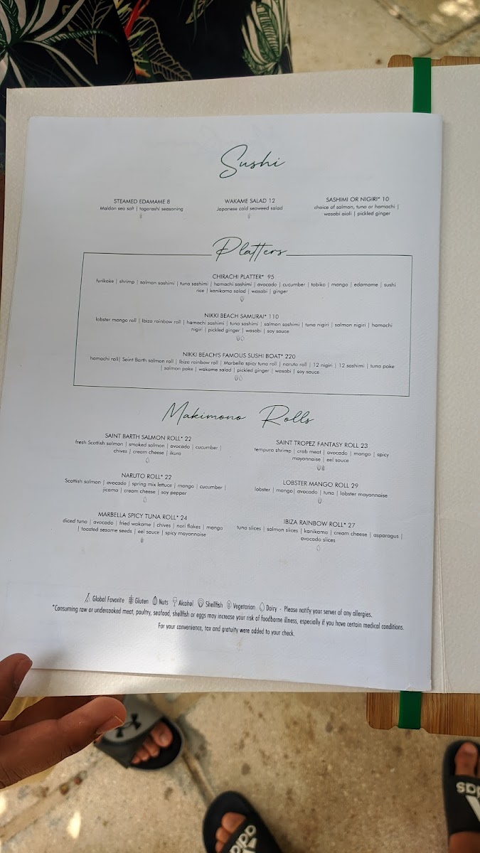 Hamachi Roll | Saint Barth Salmon Roll | Ibiza Rainbow Roll | Marbella Spicy Tuna Roll | Unagi Roll | 12 Nigiri | 12 Sashimi | Tuna Poke | Salmon Poke | Asian Wakame Salad | pickled ginger | wasabi | soy sauce